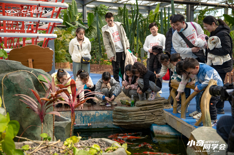 下午,小奇同學會帶著車主們來到熱帶植物館研學參觀,帶小朋友們認識了奇妙的植物世界,而在無土栽培番茄基地,大家更是親自下場采摘,體驗到收獲的樂趣。