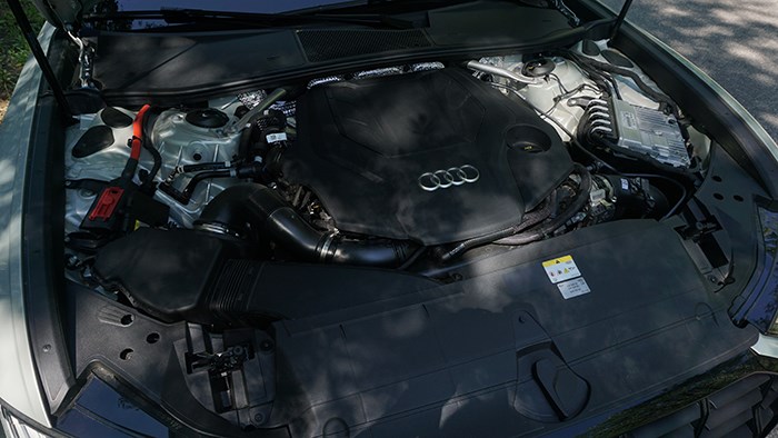 奧迪A6 allroad配備了quattro四驅系統和空氣懸掛,還加入了48V輕混技術。大排量發動機的優勢在A6 allroad上體現的淋漓盡致, V6帶來優雅的運轉聲浪和充沛的低扭帶動一臺自重超過2頓的A6 allroad非常從容,超強的動力儲備面對行駛中急加速或超車也是手到擒來,完全沒有任何疲軟。