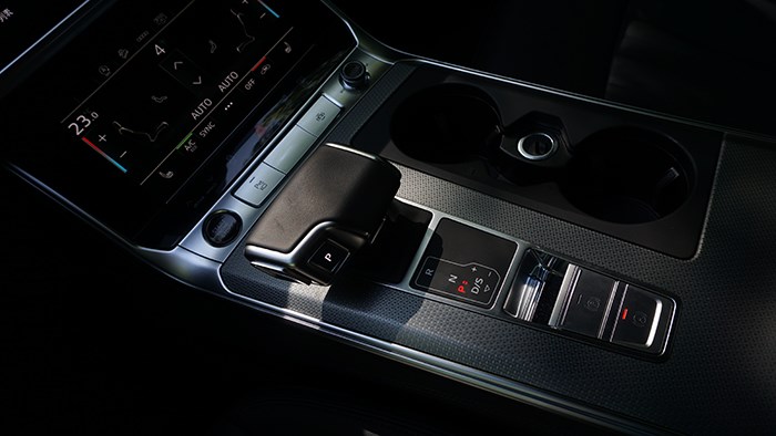 下方的屏幕則是空調以及座椅加熱的調節控制,另外還有發動機自動啟停、陡坡緩降等細節功能開關按鍵。換擋桿區域面板是有獨特紋理設計的,視覺上和觸感上都很棒。