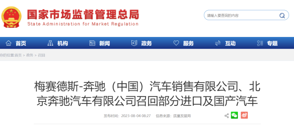 8月4日,萬車網從國家市場監管總局網站獲悉,梅賽德斯-奔馳(中國)汽車銷售有限公司、北京奔馳汽車有限公司根據《缺陷汽車產品召回管理條例》和《缺陷汽車產品召回管理條例實施辦法》的要求,向國家市場監督管理總局備案了召回計劃,計劃召回部分進口及國產車輛。