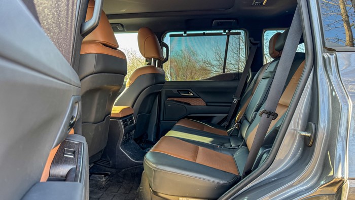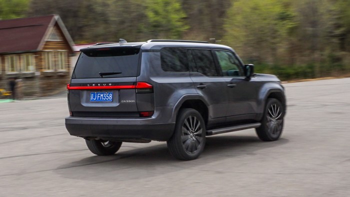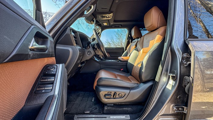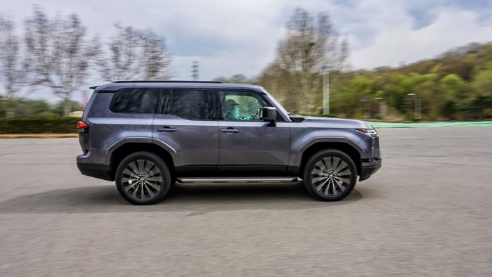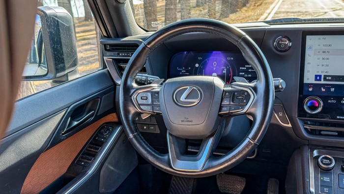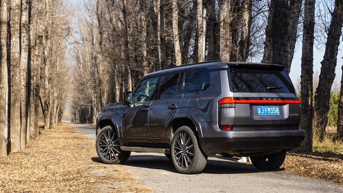 GX550h凌峰版使用了22寸輪轂,輪胎規(guī)格為265/50 R22,品牌為鄧祿普,作為一臺(tái)硬派越野車實(shí)屬不小。大尺寸的車輪增加了整體的視覺(jué)沖擊力,同時(shí)也提升了車輛的運(yùn)動(dòng)感和豪華感。為了上車方便,腳踏板也是原廠配置。