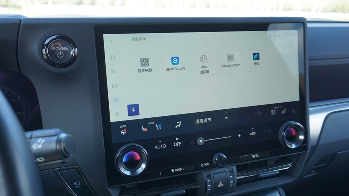車的前臉延續(xù)了雷克薩斯家族式的紡錘形格柵設(shè)計(jì),格柵采用全黑色處理,品牌標(biāo)志則使用鍍鉻裝飾,整個(gè)前臉很有視覺(jué)沖擊力。