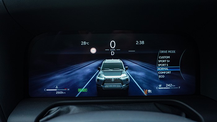 GX550h搭載一臺(tái)2.4T/L4/281馬力的混合動(dòng)力系統(tǒng),電動(dòng)機(jī)為54馬力。8速手自一體變速箱。車輛使用了托森式差速器。